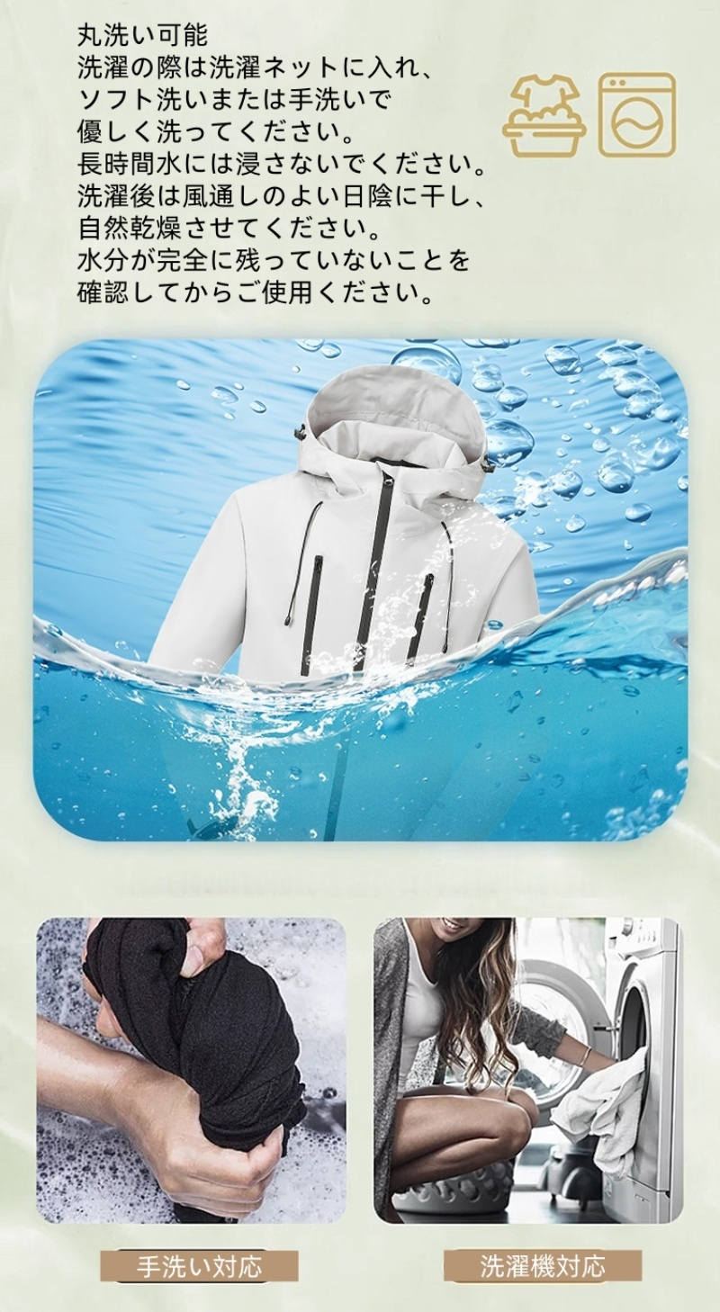 余熱がない状況で手で水洗えます。洗濯する前に必ずバッテリーを取り外してください。