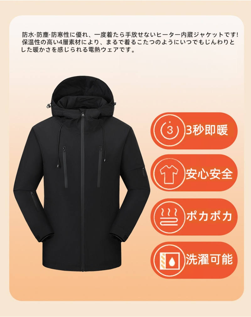 新品電熱ジャケット 5エリア発熱 発熱ジャケット ワークマン 電熱ウェア バイク ダウンジャケット ヒーター内蔵 防寒着 3段温度調整 USB給電 アウトドア 洗える