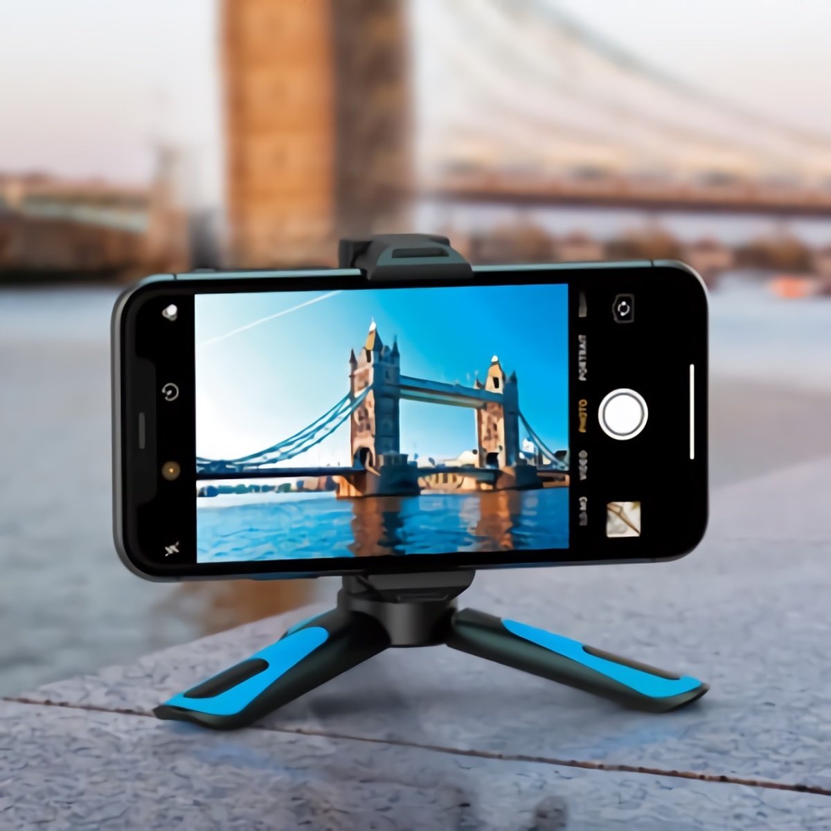 urban field 携帯用 スマホ三脚 スマホスタンド 360° 調節可能 自撮り棒 軽量 小型 コンパクト 多機種対応 (ブルー)