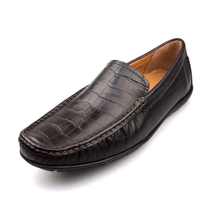 即日発送可 TIB ティーアイビー 本革 ソフト牛革 スリッポン デッキシューズ ドライビングシューズ 型押し クロコ調 ビジネス メンズ 紳士靴 ダークブラウン