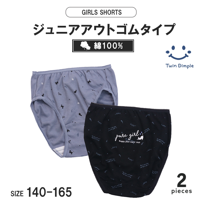 子供 下着パンツ 女児ショーツ 女の子 綿100% (シンプルネコロゴショーツ 2枚組 140 150 160 165(2532)