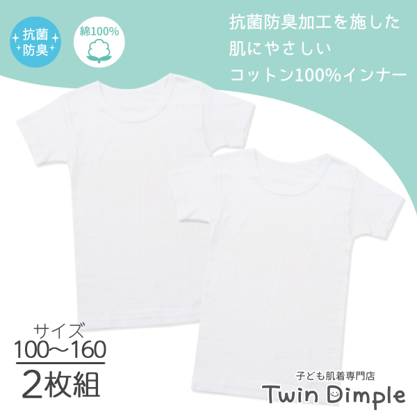 子供 下着シャツ キッズ インナー 肌着 ジュニア (抗菌防臭加工 男児 白無地 半袖 丸首シャツ 2枚組 100〜160 (4654/3153)