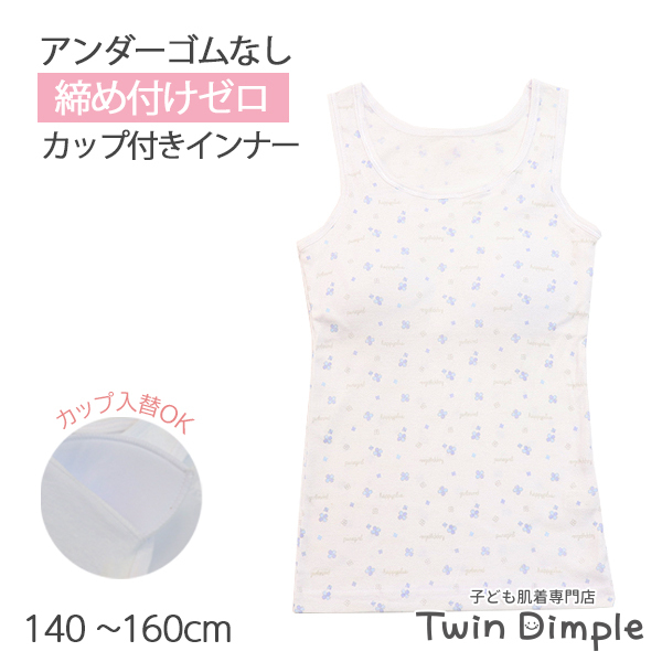 締め付けない カップ付き 女の子 タンクトップ ジュニア (クローバー柄カップ入替タンクトップ 140/150/160 (7524)