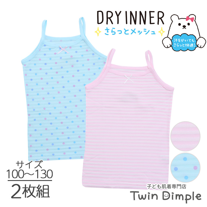 重ね着 キッズインナー 女児ドライキャミソール ドット・ボーダー柄 2枚組 100~130(9049)