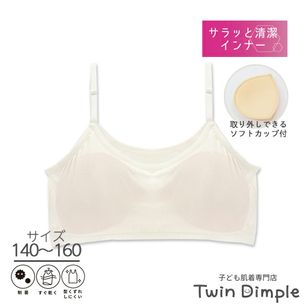女の子 カップ入り 胸二重 肌着 ( 制菌 サラッと清潔インナー カップ入替キャミハーフ オフ 140 150 160 (1127)