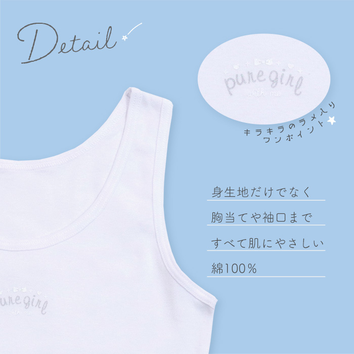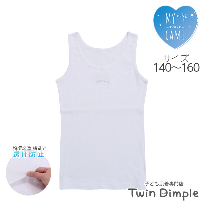 胸2重 女の子 タンクトップ ジュニア 胸2重ワンポイントタンクトップ 140/150/160 (7588)