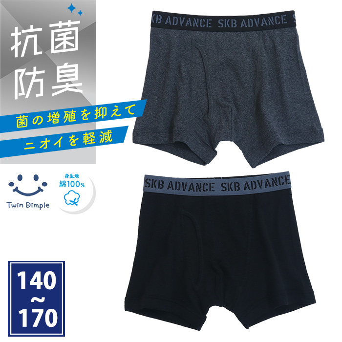 男児 ジュニアパンツ 綿100% 抗菌防臭 ロゴ柄 ボクサーパンツ 2枚組 140/150/160/170 (4557)