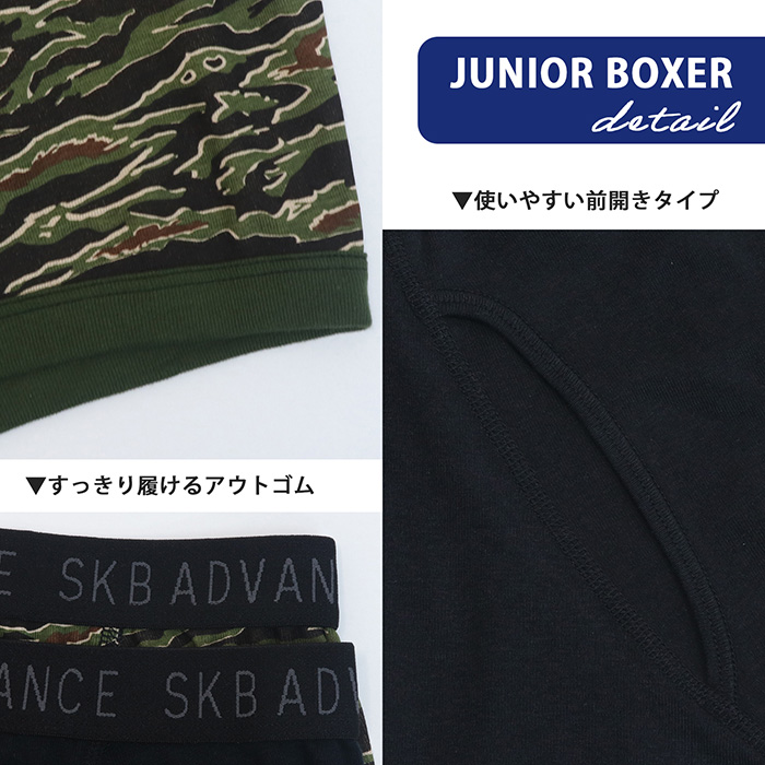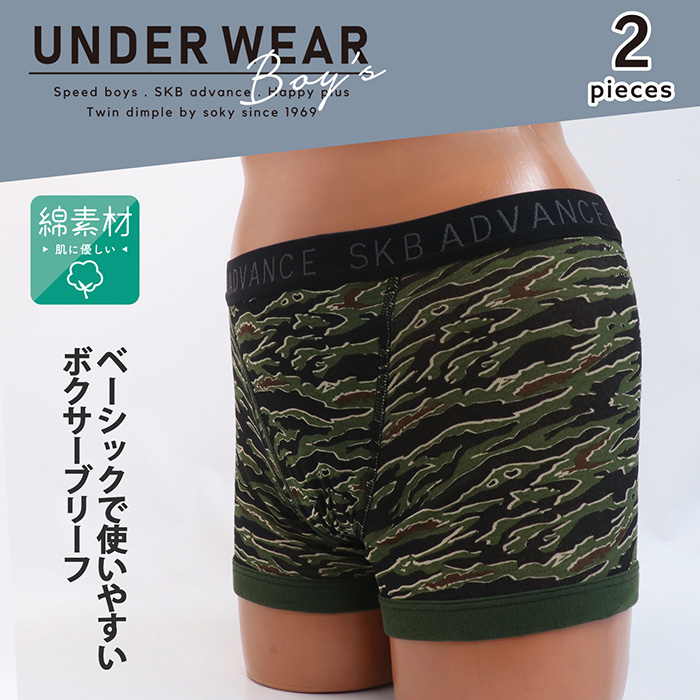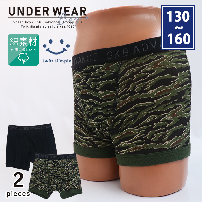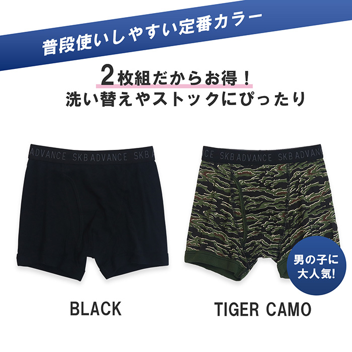 男児 ジュニアパンツ 綿100% タイガーカモ柄ボクサーパンツ 2枚組 130/140/150/160 (4562)