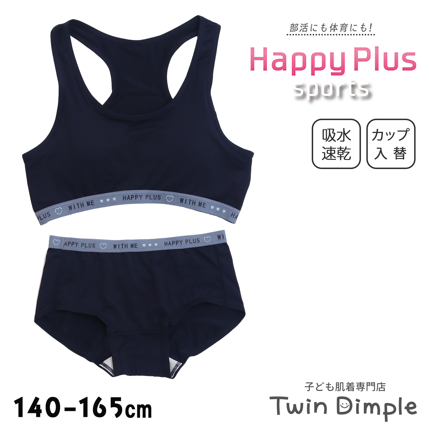 ハーフトップ ジュニア ブラ スポブラ インナージュニア 肌着 女の子 (ネイビーロゴハーフトップ&ショーツセット 140〜165 (4571)