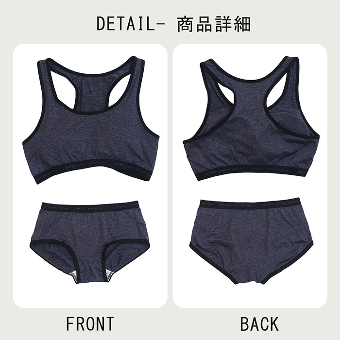 ハーフトップ スポブラ 下着 パンツ 肌着 上下セット 女の子 (シンプルロゴハーフトップ&ショーツセット グレー 140〜165 (4572)