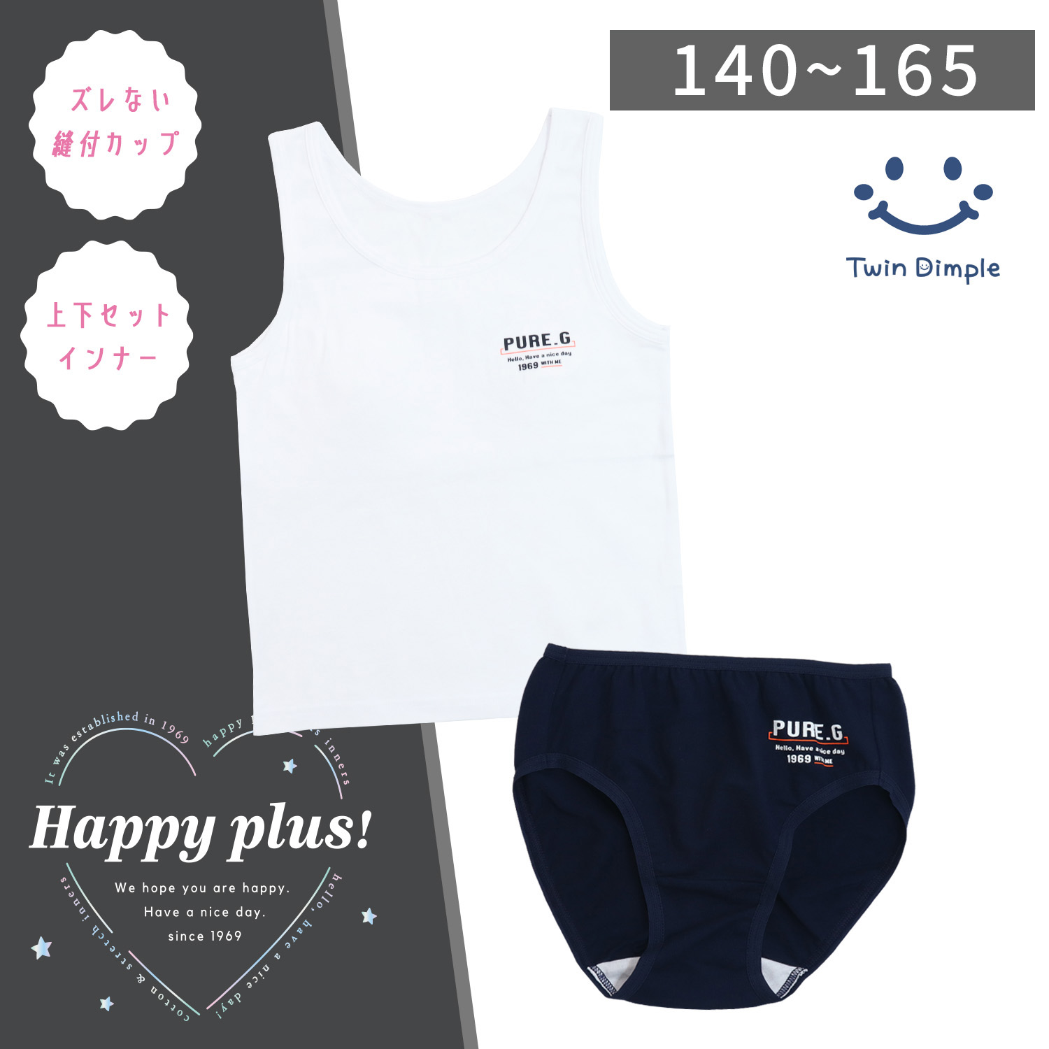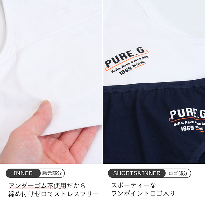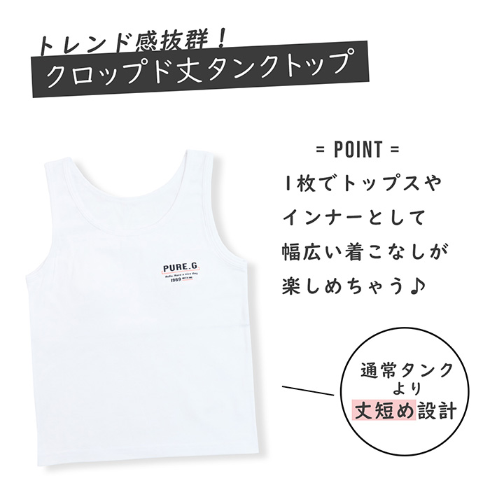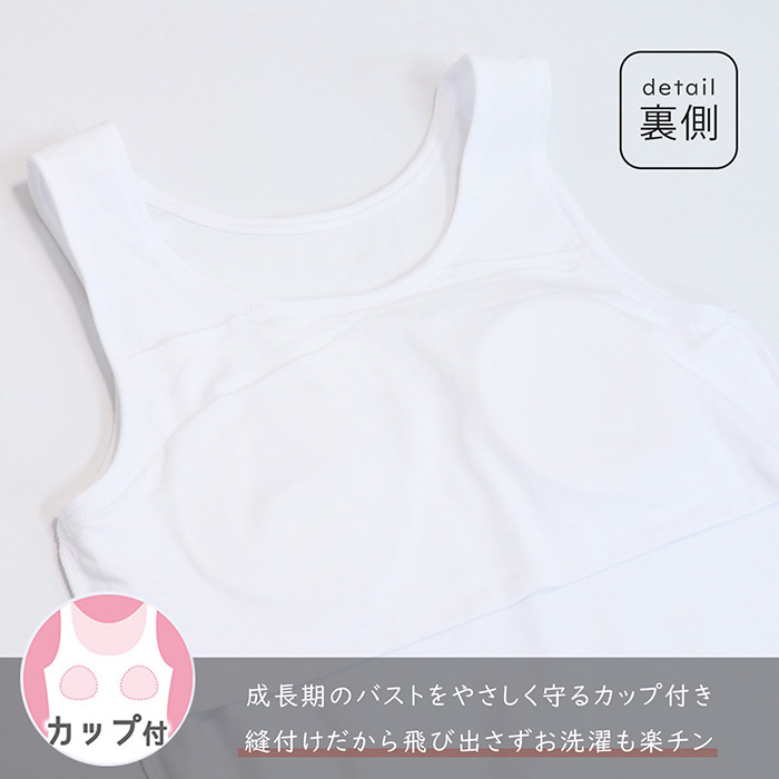 タンクトップはカップ入りで成長期のバストをやさしく守ります。