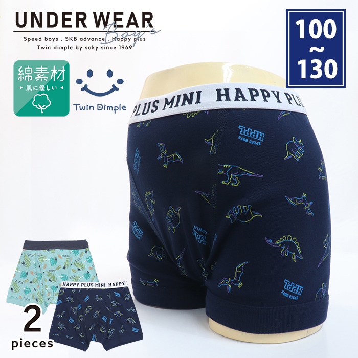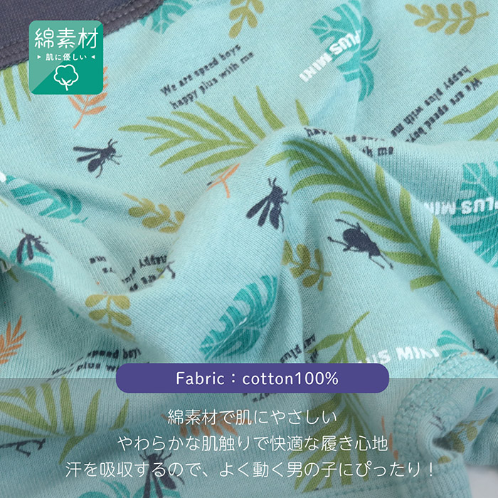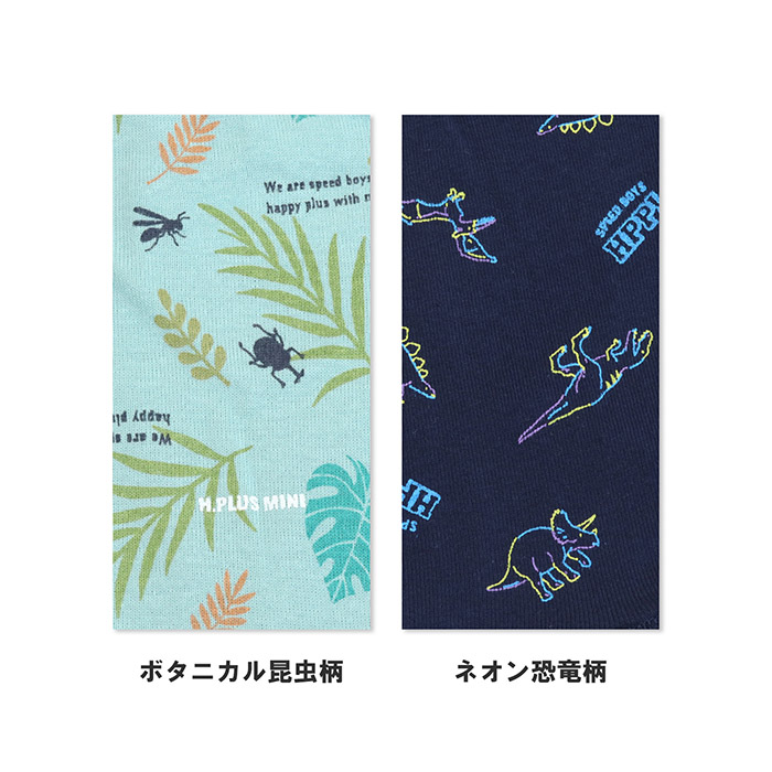 キッズ パンツ 下着 男の子 子供 総柄 綿100% コットン 男児ボクサーパンツ (ボタニカル昆虫柄/ネオン恐竜柄) 2枚組 100/110/120/130 (5542)