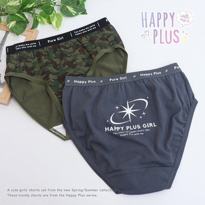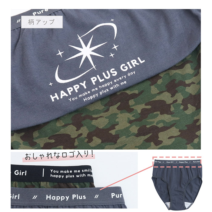 子供 下着パンツ ショーツ 女児 女の子 マーク迷彩ショーツ 2枚組 140/150/160/165 (6012)