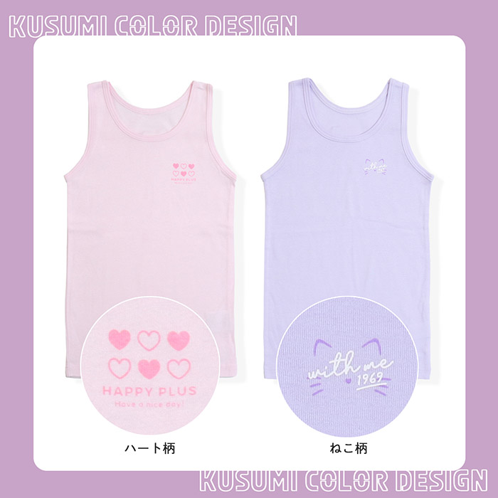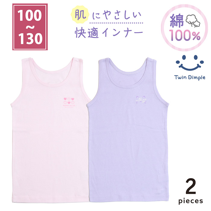 キッズ インナー 女の子 子供 肌着 女児タンクトップ (ハート・ねこ柄) 2枚組 100/110/120/130 (6038)