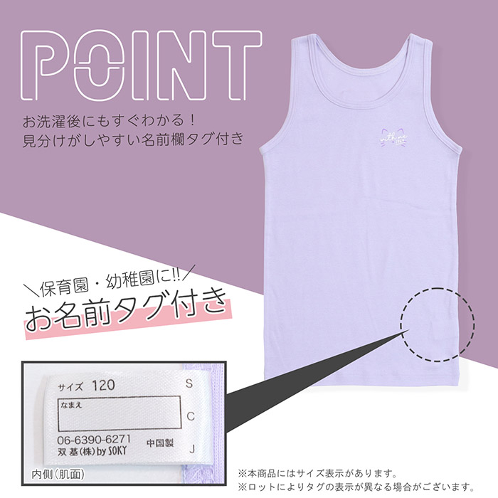 タンクトップ インナー キッズ 子ども 子供 こども 女児 女の子 3歳 4歳 5歳 6歳 7歳 保育園 幼稚園 小学生 一年生 年長 年中 100 110 120 130