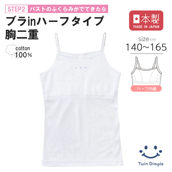 胸二重 ブラトップ インナー 子供 肌着 ジュニア スクール 女の子 日本製 ブラインキャミソール 140/150/160/165