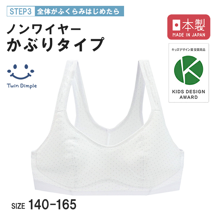 スポブラ ハーフトップ ジュニアブラ ジュニア ブラジャー 女の子 日本製 (グレードット柄ノンワイヤーかぶりブラ 140〜160 )