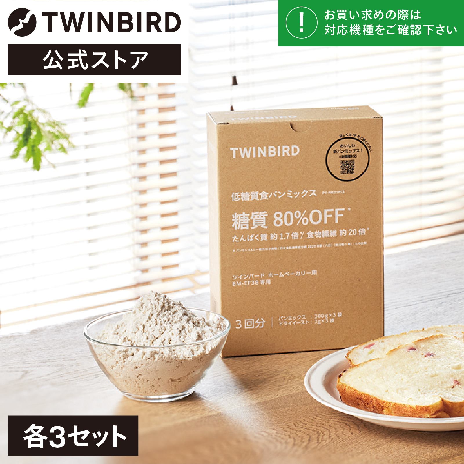 新発売【公式】パンミックス 低糖質 糖質制限 PY-PM01PS3 | ツインバード 低糖質食パンミックス パンミックス粉