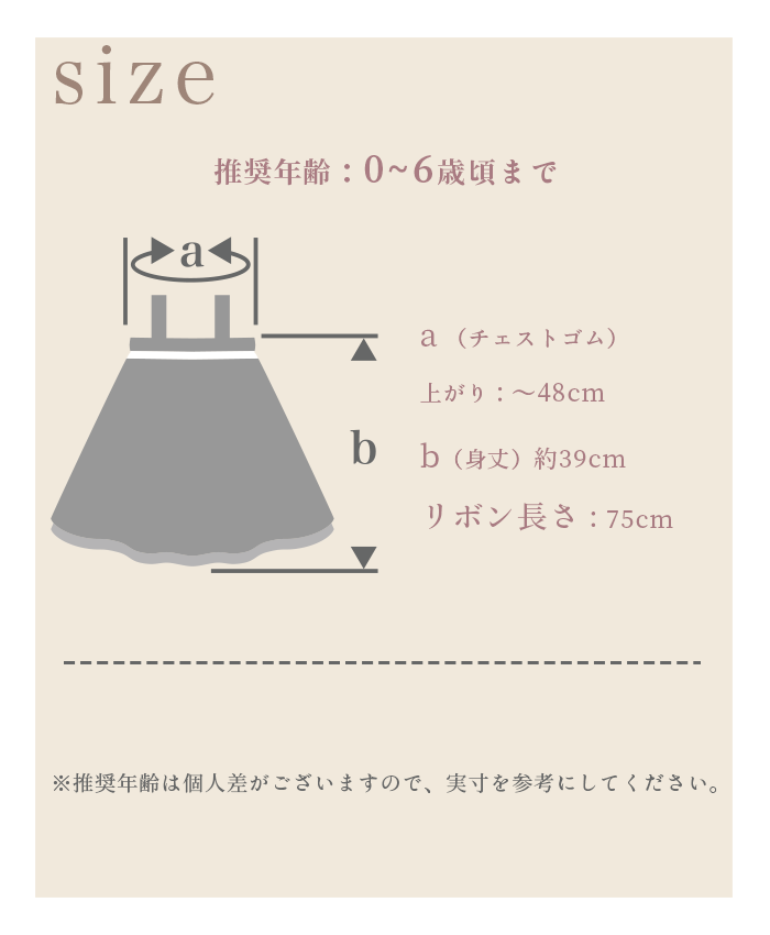 【サイズ】(チェストゴム上がり)48cm (丈)39cm (リボン長さ)75cm