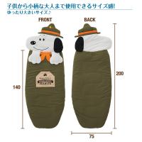 子供から小柄な大人まで使えるシュラフ。スヌーピーの手は肩口からの冷気を防ぐ役割が。ベルクロ付きのスヌーピーの両手が肩をしっかりホールドしてくれるので、寝袋内への風の侵入を防ぎあたたかく眠れます。