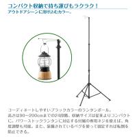 【特徴】足元のステークを打ち込むだけの簡単設置!楽しみ広がる便利な多機能ランタンポール。スペースをとらず、狭い場所や置きたいところに自由に設置することができます。また、一本足構造のため足が引っかかりにくく邪魔になりません。