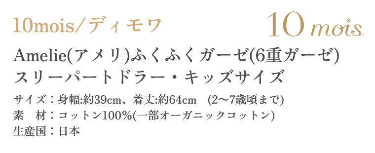 フィセル ディモワ Amelie アメリ キッズ スリーパー ふくふくガーゼ 6重ガーゼ 21251023 10mois