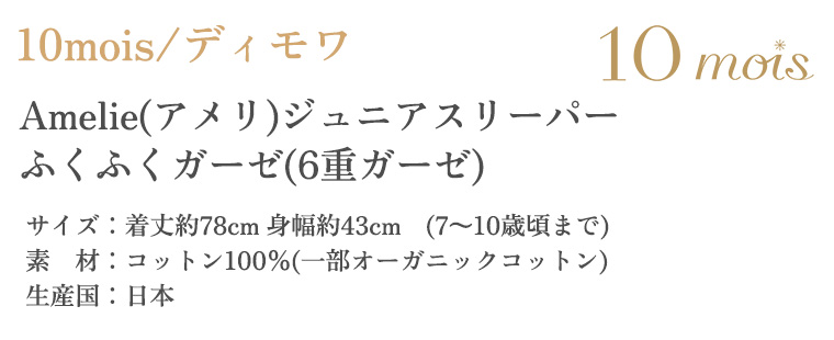 フィセル ディモワ Amelie アメリ ジュニア スリーパー ふくふくガーゼ 6重ガーゼ 21151054 10mois