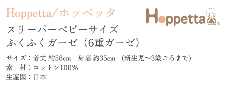 フィセル ホッペッタ スリーパー ベビーサイズ ふくふくガーゼ(6重ガーゼ) 100177-5261 100177-5260 Hoppetta