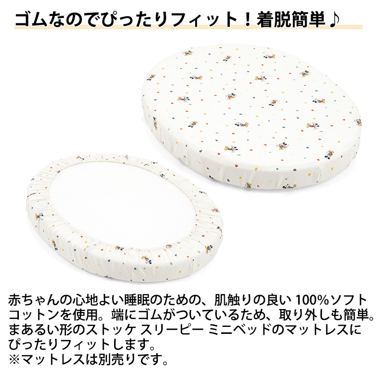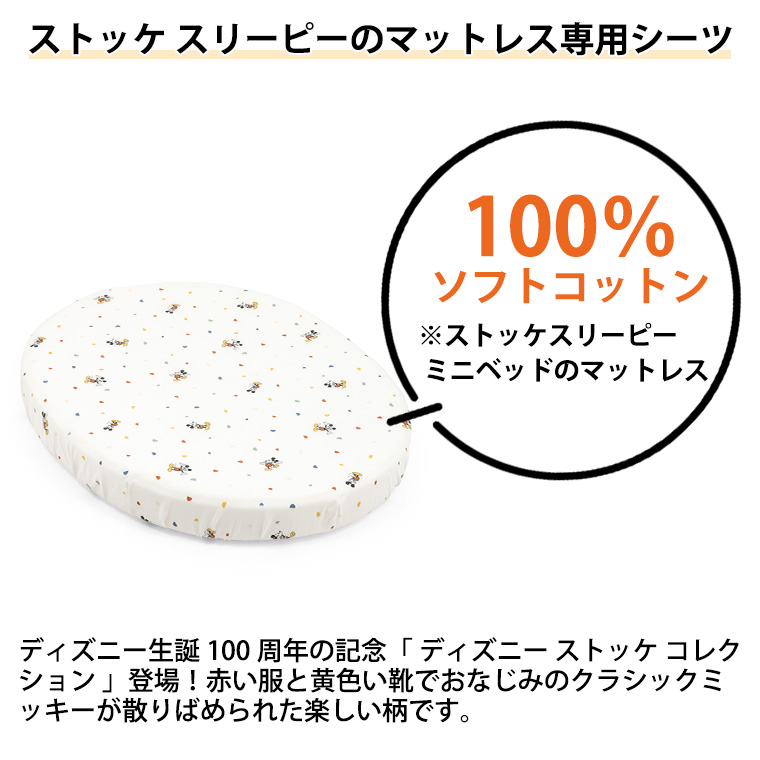 クラシックミッキーがデザインされた、ストッケ スリーピーのマットレス専用シーツです。