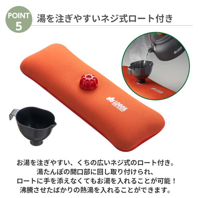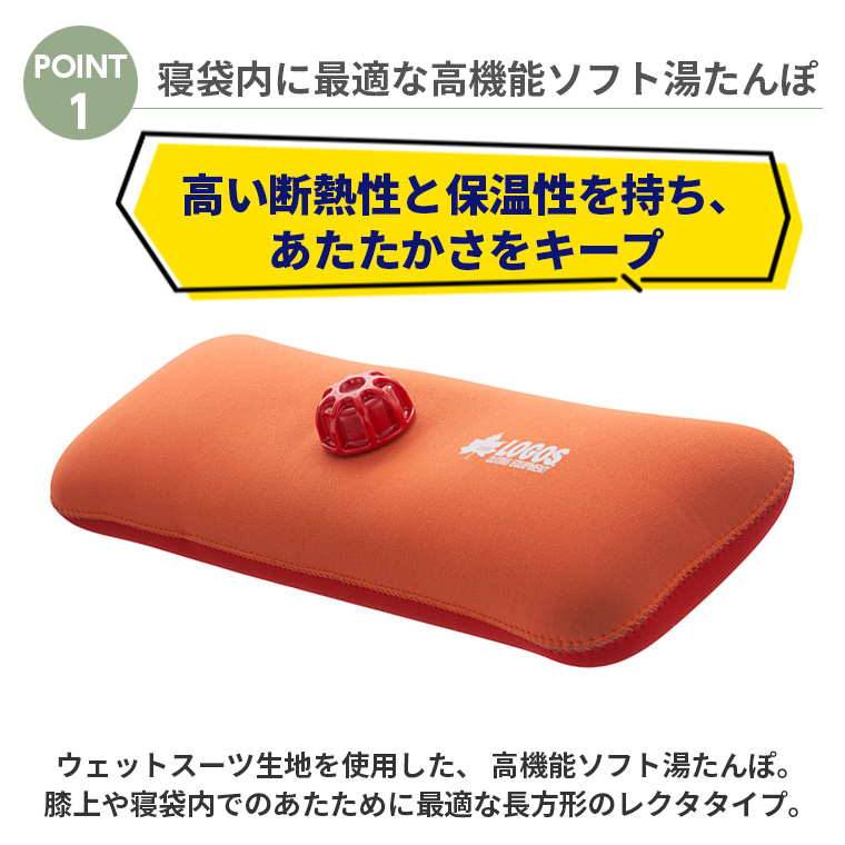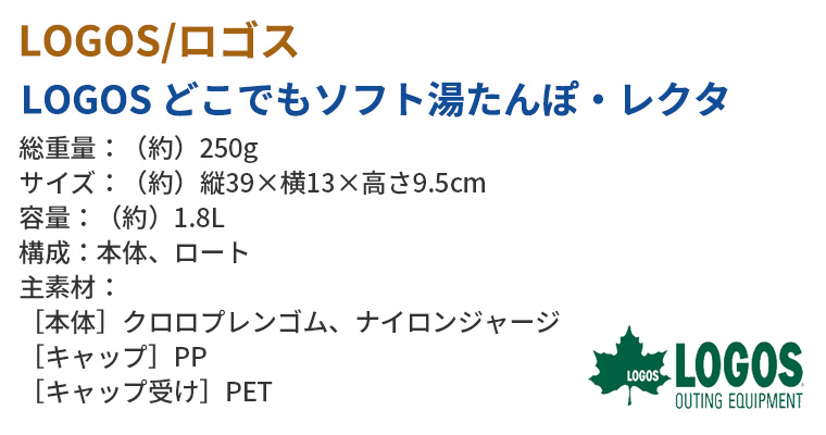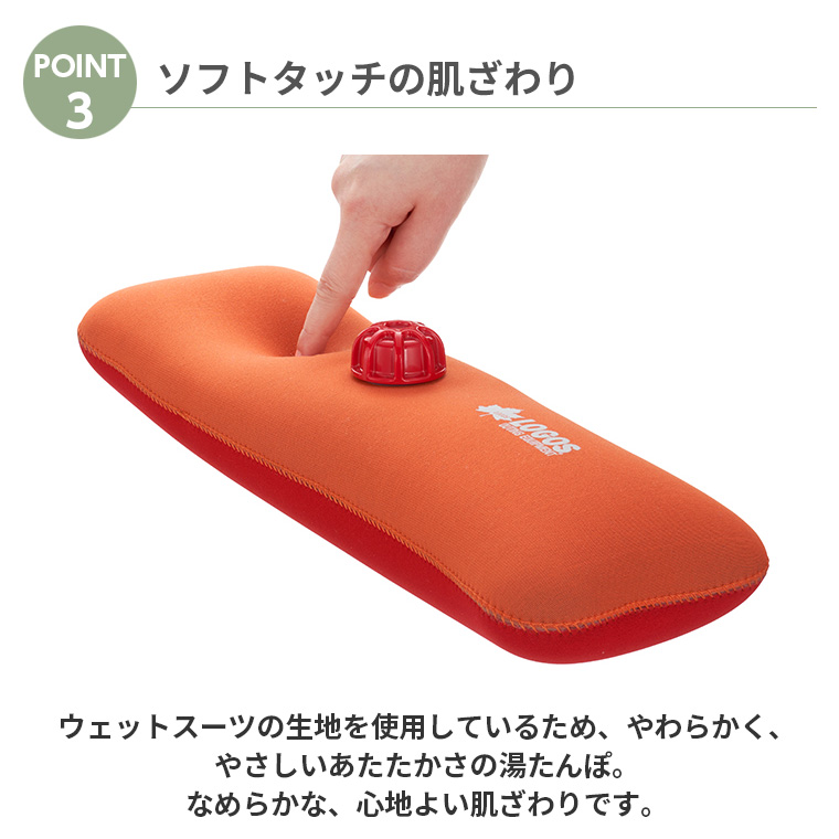 【特徴】LOGOS どこでもソフト湯たんぽシリーズにレクタ型が登場。 胸元に抱えて使ったり、両足を温めたりすることができます。 ウェットスーツ生地を使用しているため、別途布地の袋に入れたりせずにそのまま使用できます。