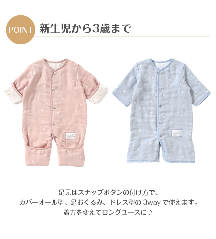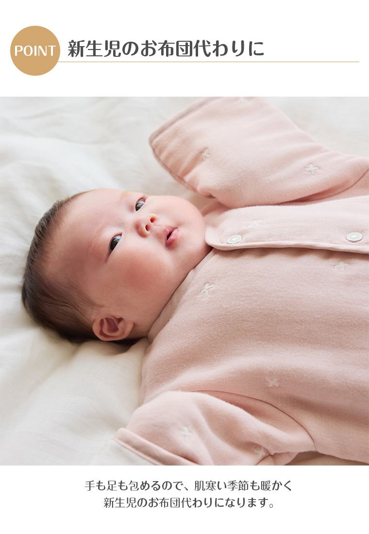 ・6wayスリーパーのサイズ感を小さくし、首回り、丈感など新生児から使いやすいサイズ感に最適化。