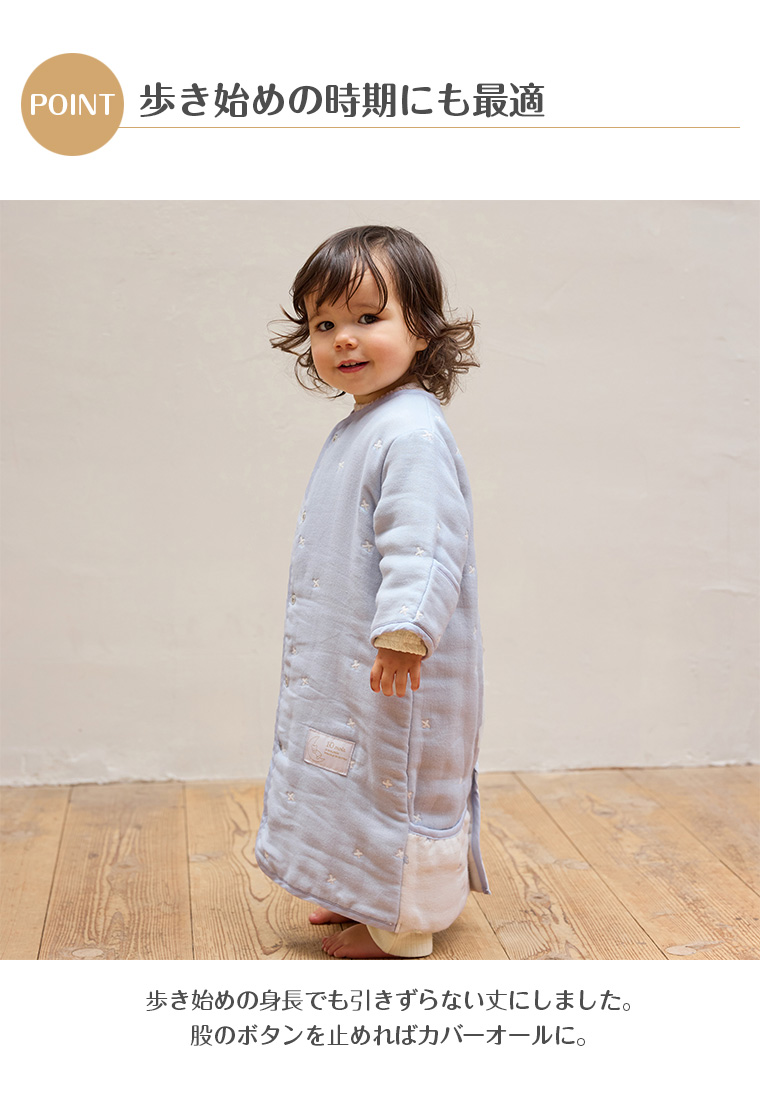 【特徴】・歩き始めの頃も裾を踏まないあんしんの丈感で、はじめてのあんよの時期もあたたかくサポート。