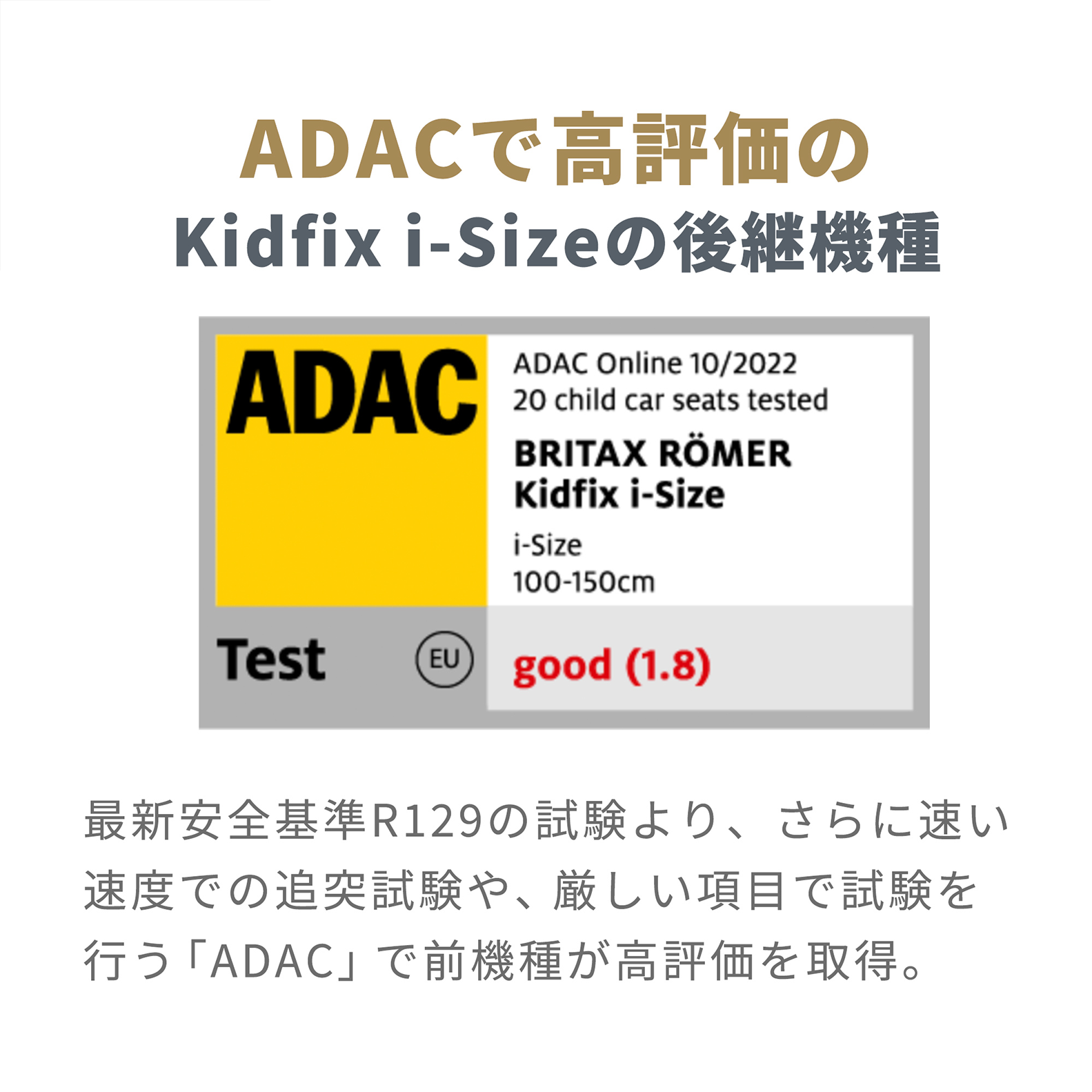 KIDFIX PROは、最新の安全基準「R129 i-Size」に適合するよう設計されたBRITAX RMER史上最も安全なジュニアシート※です。