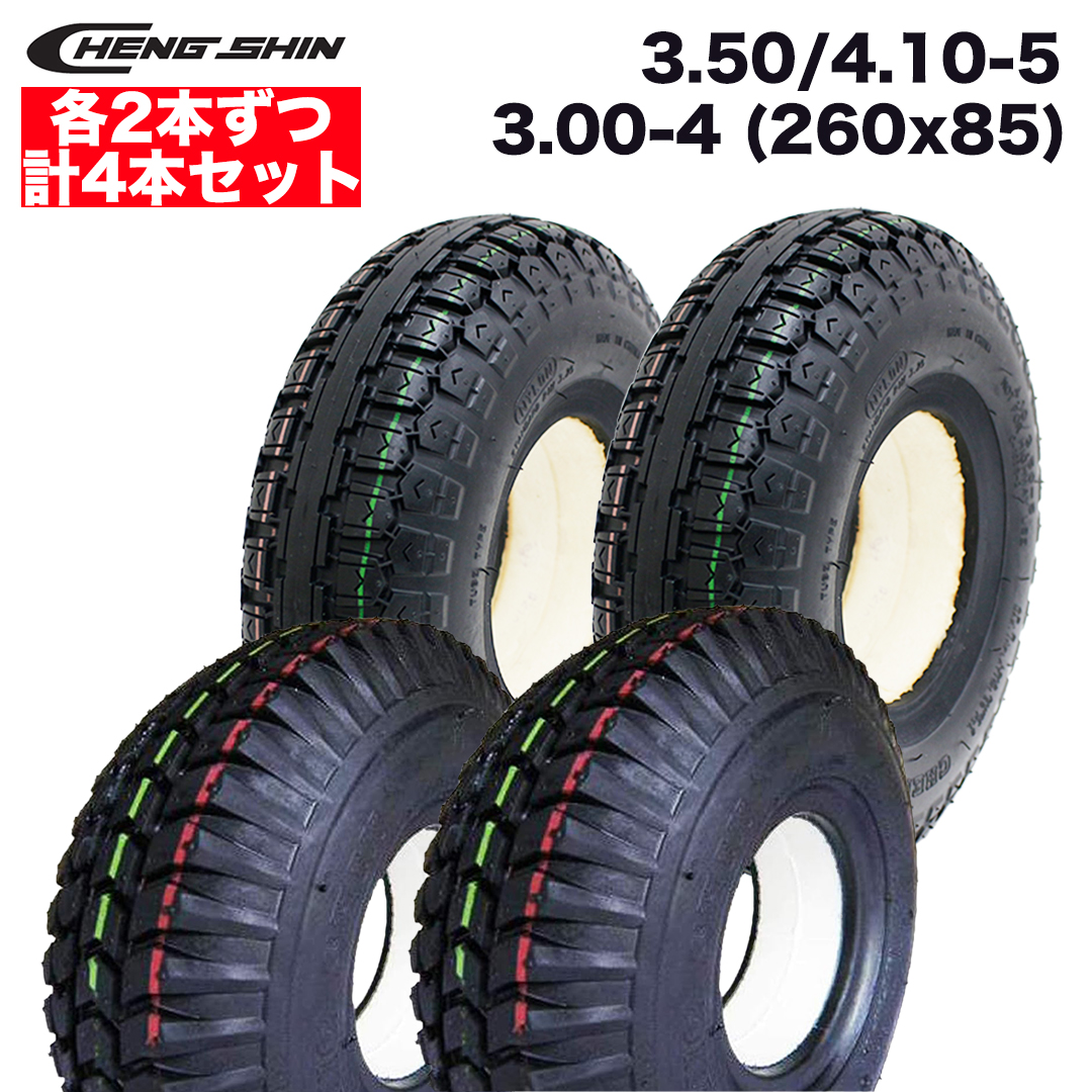 【商品名】CHENG SHIN製 福祉電動カート用ノーパンクタイヤ C-248 3.00-4 (260x85) 2本 & 4.10/3.50-5 2本 フルセット