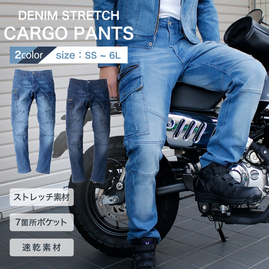 バイク デニム ジーンズ パンツ ストレッチ ズボン 動きやすい ポケット多い バイクパンツ メンズ ライディングパンツ カーゴパンツ バイクウェア