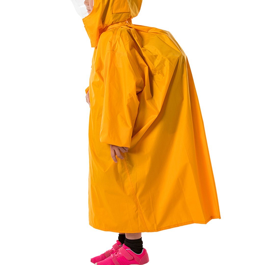 日本製 レインコート (100:140〜150cm) 自転車用ヘルメット対応 通学 登園 黄色 イエロー ランドセル対応 レインウェア リュック 子供 キッズ 小学生 幼稚園