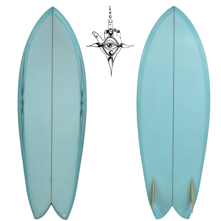 トラディショナルなサンディエゴフィッシュに、サイドカットと呼ばれるウエストを配置したボードデザイン、