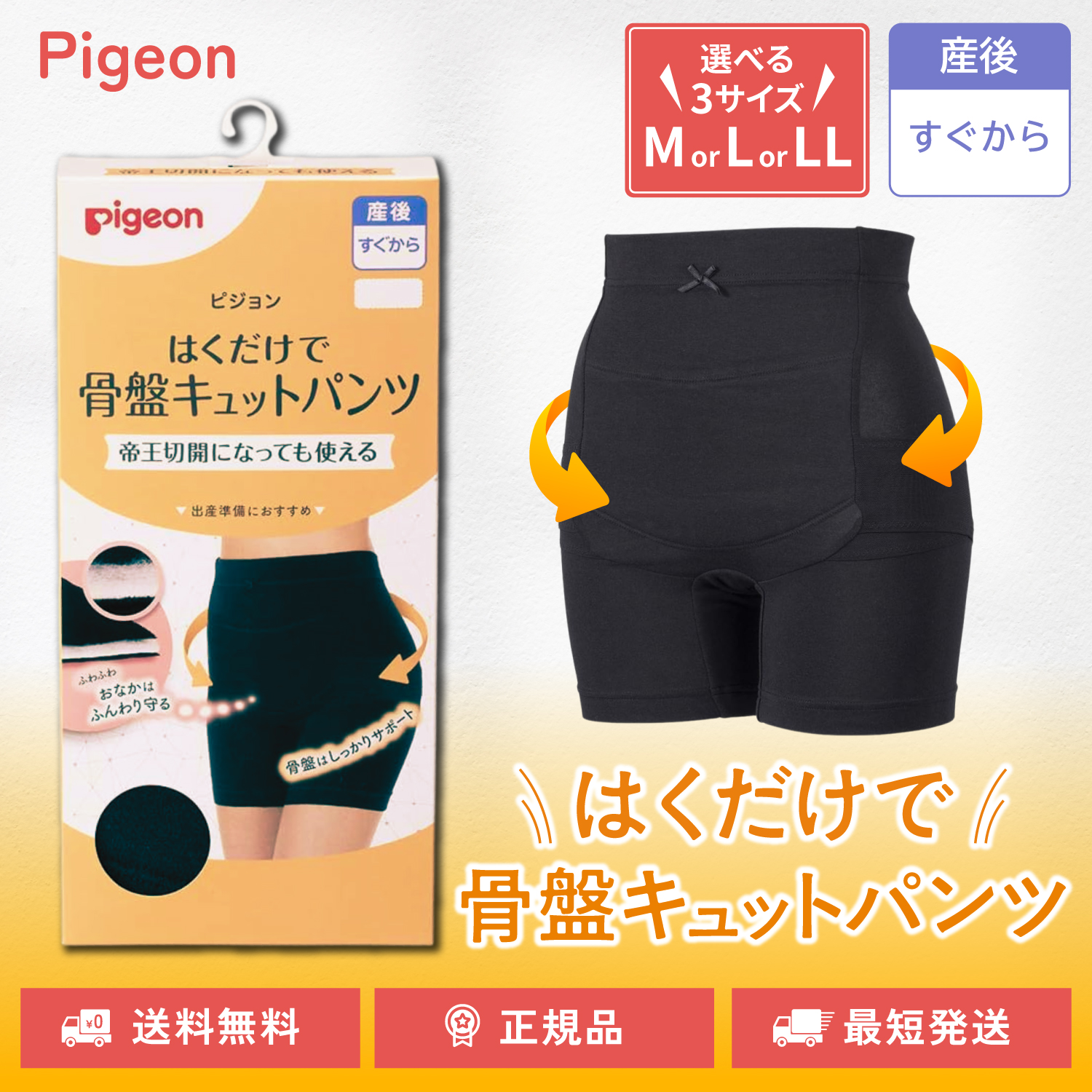 | 商品名 | ピジョン はくだけで骨盤キュットパンツ 帝王切開対応 選べるサイズ M L LL ブラック 産前 産後 骨盤ケア 骨盤サポート pigeon |