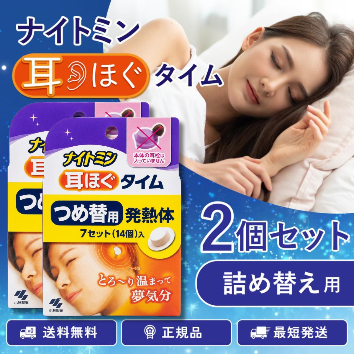 商品名ナイトミン 耳ほぐタイム 発熱体 7セット入 2個セット 詰替用 (耳栓 本体なし) 睡眠用 寝付きづらい夜に 音を遮断 温熱効果 小林製薬