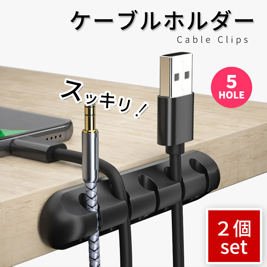 2個セット ケーブルホルダー ケーブルクリップ ケーブル 固定 まとめる ライトニングケーブル USBケーブル スマホ 充電ケーブル 整理 両面テープ クリップ 収納