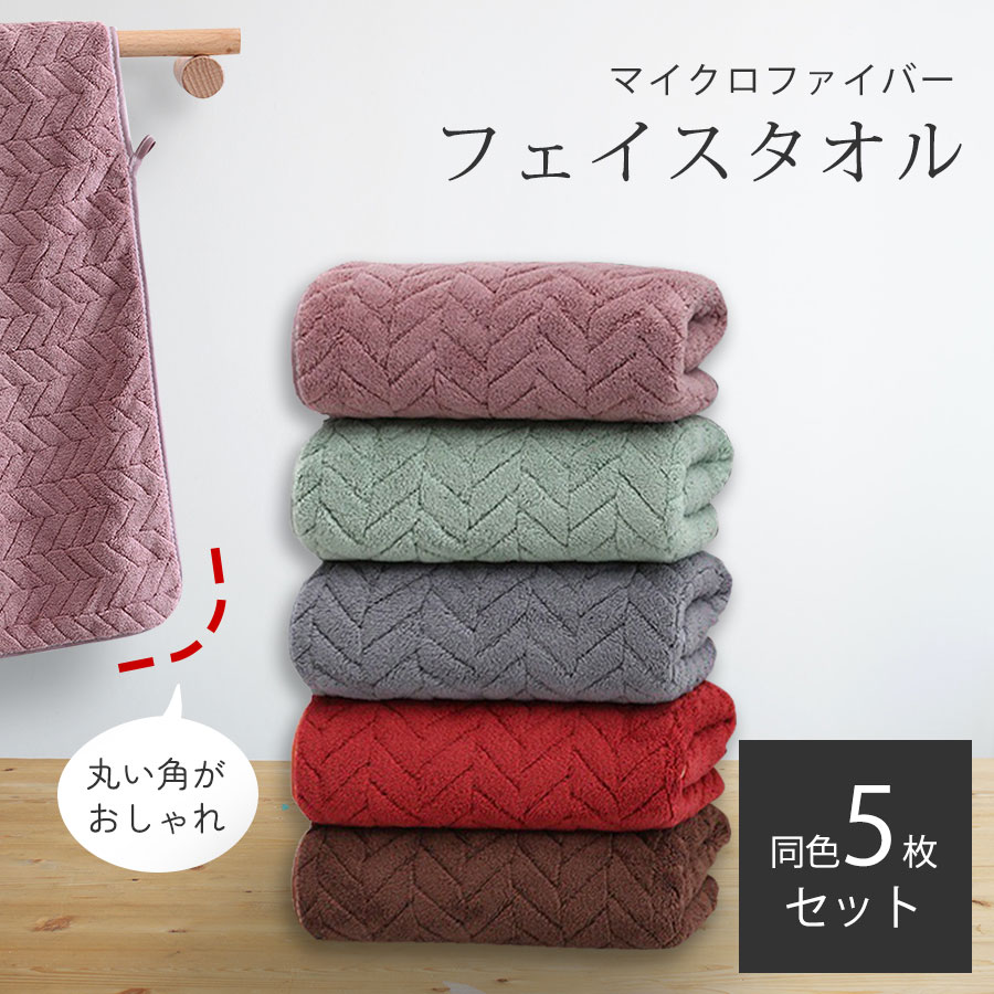 フェイスタオル まとめ買い 同色 5枚セット マイクロファイバー ピンク グレー グリーン おしゃれ タオル