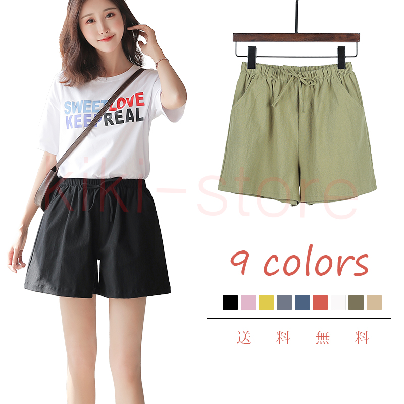 商品名 【メール便送料無料】ショートパンツ レディース カラフル 短パン ショーパン パンツ スウェット ランニング ゆったり 女性用 可愛い pants ボトムス ウェストゴム チノパン ズボン 綿 コットン 夏 スポーツ 無地 シンプル 定番 黒 白 黄色い 青 緑