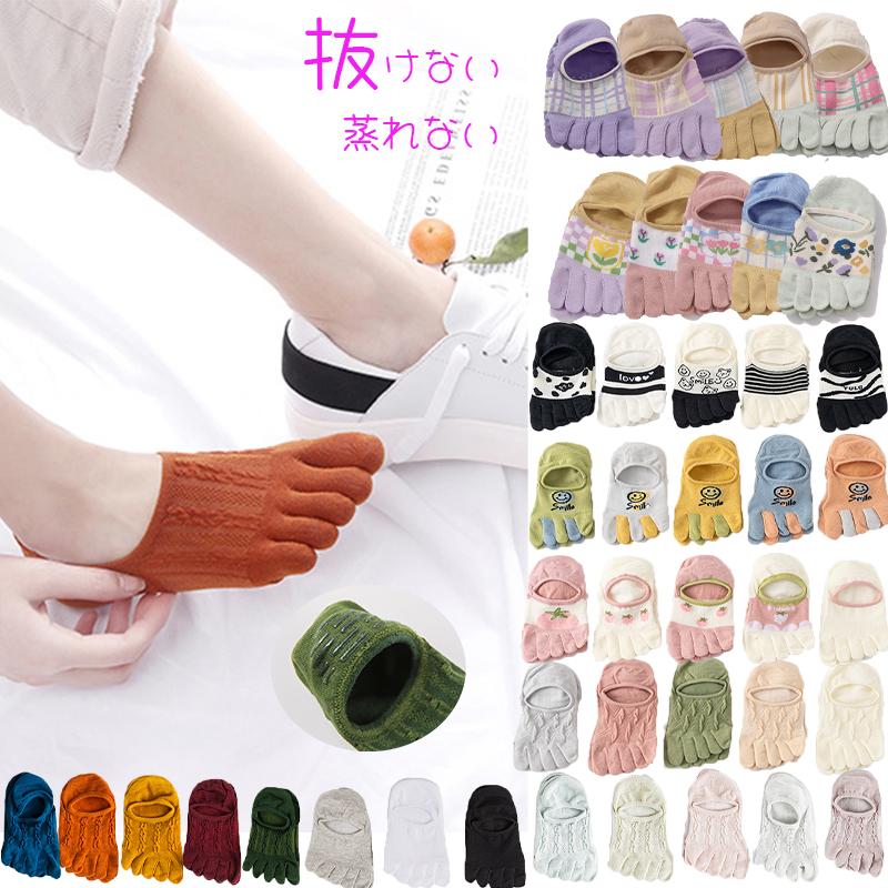 靴下 ソックス レディース 5本指 五本指 滑り止め スニーカー フットカバー 脱げない 綿 5足セット 夏用 送料無料