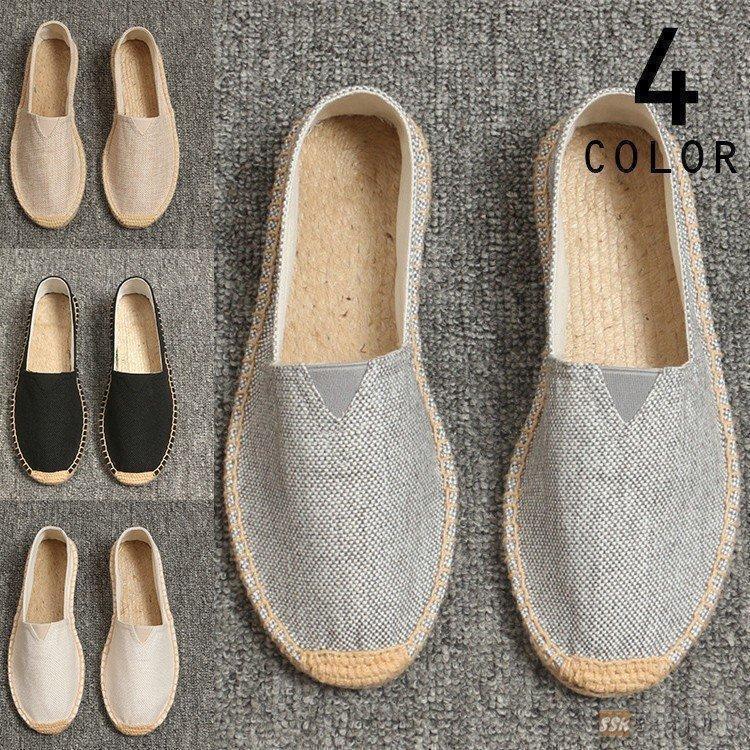 麻靴 エスパドリーユ ローファー シューズ カジュアルシューズ メンズ 麻 リネンシューズ シンプル 透気 父の日 ギフト