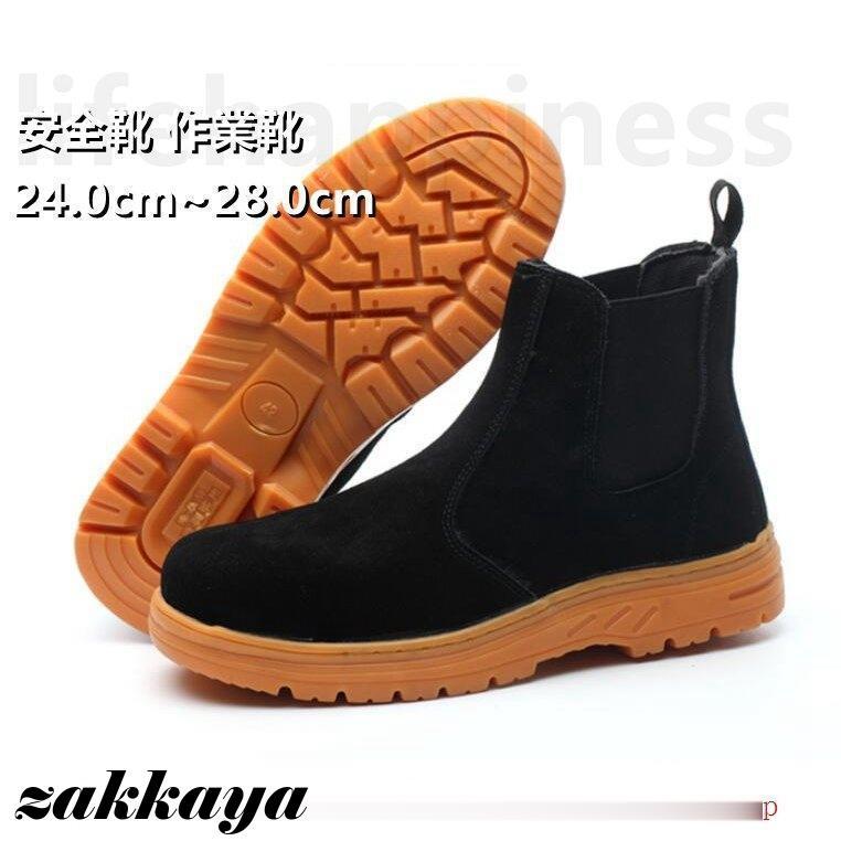 安全靴 作業靴 ブーツ つま先保護 刺す叩く防止 防滑 通気 軽量 踏み抜き防止 溶接用 メンズ 紐なし 革 作業靴