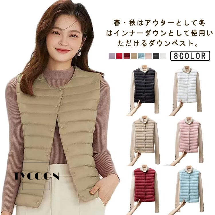 キルティングベスト レディース アウター 軽い 暖か 防寒 薄い 無地 シンプル ショ