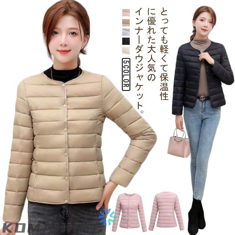 シンプル 中綿コート ライトダウン レディース 通学 インナーダウン ジャケット エコダウンジャケット 保温 中綿ジャケット 通勤 クルーネック アウ