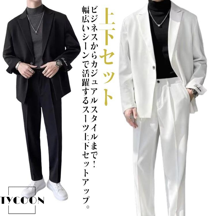 メンズ スーツ セットアップ テーラードジャケット ロングパンツ スラックス 上下 2点セット フォーマル ビジネス 長袖 カジュアルスーツ 無地 シ