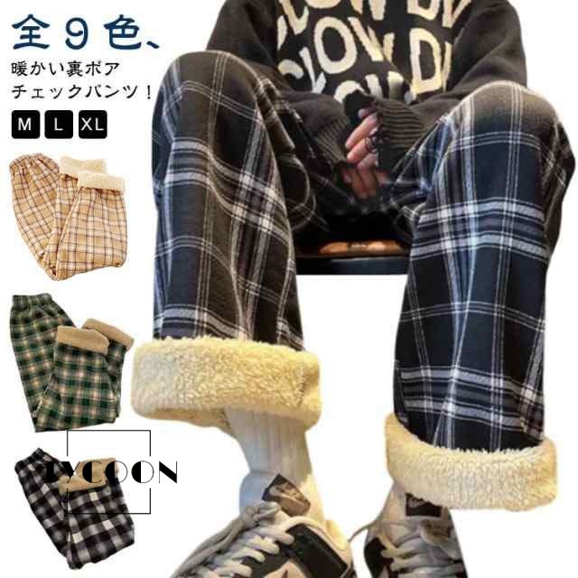 裏ボアパンツ シンプル 秋冬 ルームパンツ 裏起毛 ロングパンツ パンツ チェック柄 あったか リラックス レディース ウエストゴム 部屋着 長ズボン
