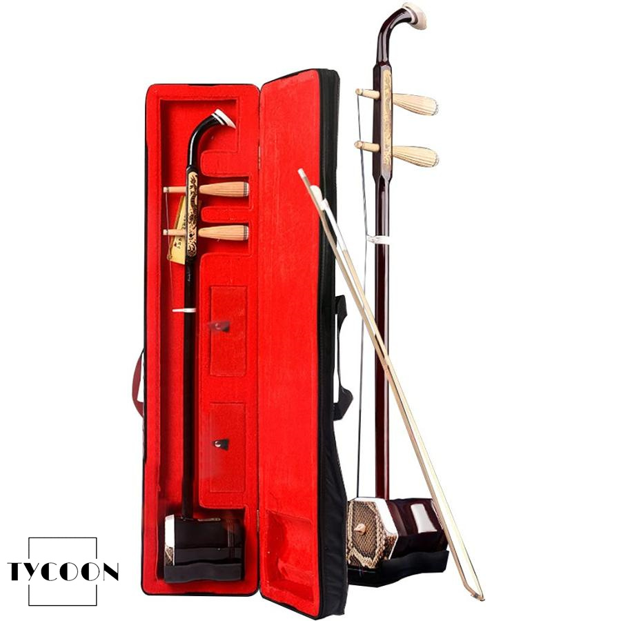 二胡 国立楽器 無料のアクセサリーとケースを備えたフラットポール二胡、 手彫りの民族楽器、 初級レベルの中国語2弦楽器